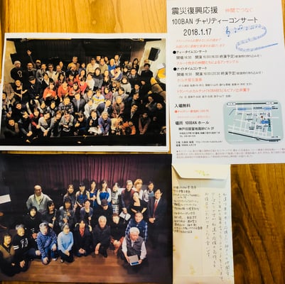 今年も 1/17 に100番ホールでさせていただいた「震災復興応援 〜仲間で繋ぐ〜100BANチャリティーコンサート」で集まった皆の気持ちと応援金を 代表して、ハープ奏者の奥田さんと私でお届けいたしました。