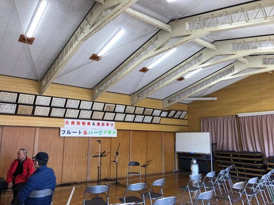 「長安寺公民館」でフルートとサウルハープで演奏をさせていただきました。