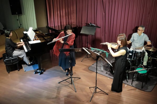 (3)フルート 橋本 恵菜・久保田 裕美、ピアノ 若林 まどか、パーカッション 福井 新