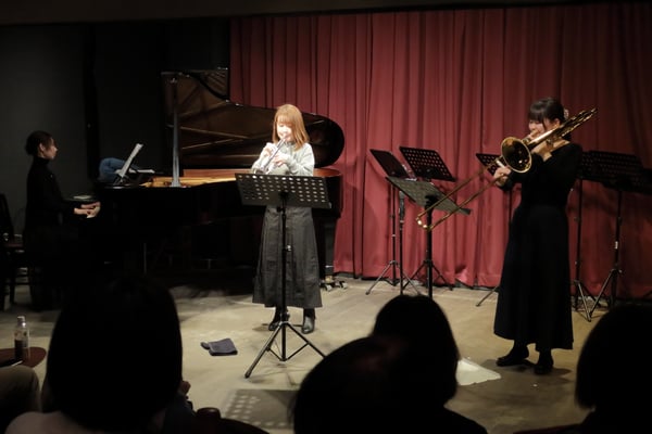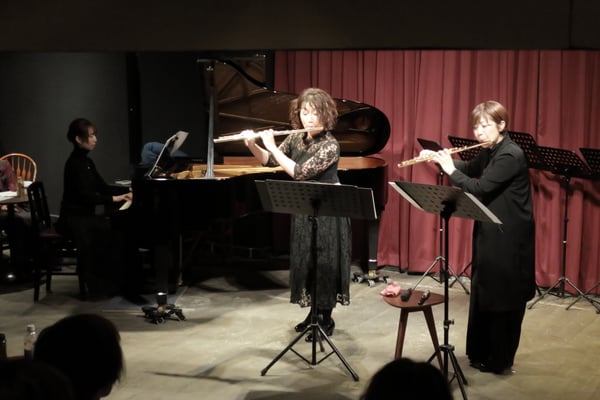 今回は去年の寄付先の七尾っ子オーケストラの皆様がお越しくださり、その中のフルートの中学生と神戸の中高生が、一緒にフルートアンサンブルを演奏しました。
