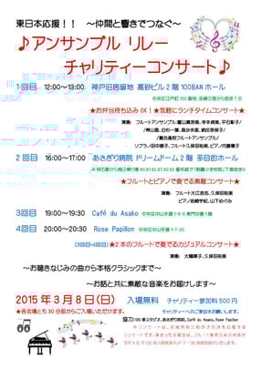 日にち:2015年3月8日(日) 入場無料(チャリティー参加料 500円)