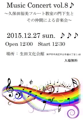 ◇出演:アンサンブルSmile 神野朋子(フルート)、久保田裕美(フルート)、佐野真弓(ピアノ)
