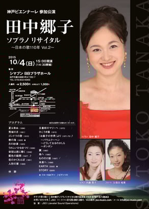 お問い合わせ:田中郷子ソプラノリサイタル実行委員会(地球音楽隊『フレンドシップ』内) FAX:0797-57-0643