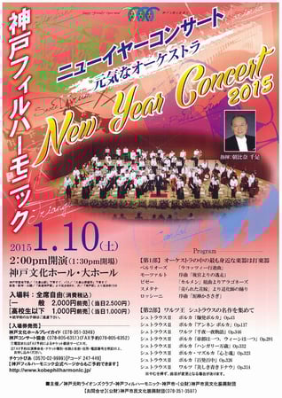 2015年は阪神淡路大震災から20年の節目の年になります。私たち、神戸フィルハーモニックは改めてあの時の事を思い起しつつ、今日まで活動が続けられていることに感謝しております。そんな節目の年のお正月に格別な思いでニューイヤーコンサートを開きます。