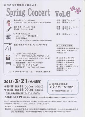 お問い合わせ先:たつの市音楽家協会アクアホール内(TEL0791-72-4688)