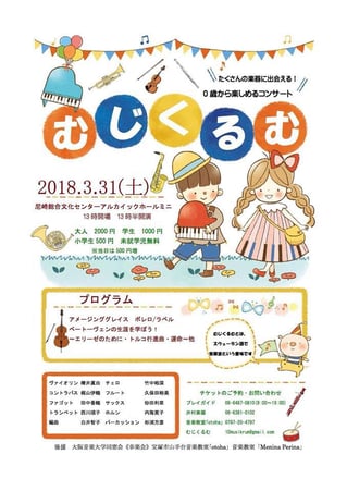 「むじくるむ 」とは、スウェーデン語で音楽教室という意味で、コンサートでは、子供も大人も一緒に むじくるむの教室でいろんなジャンルの音楽を楽しむ事ができる内容になっています✨