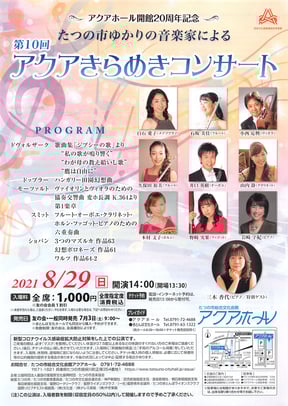 ~アクアホール開館20周年記念~たつの市ゆかりの音楽家による第10回アクアきらめきコンサート